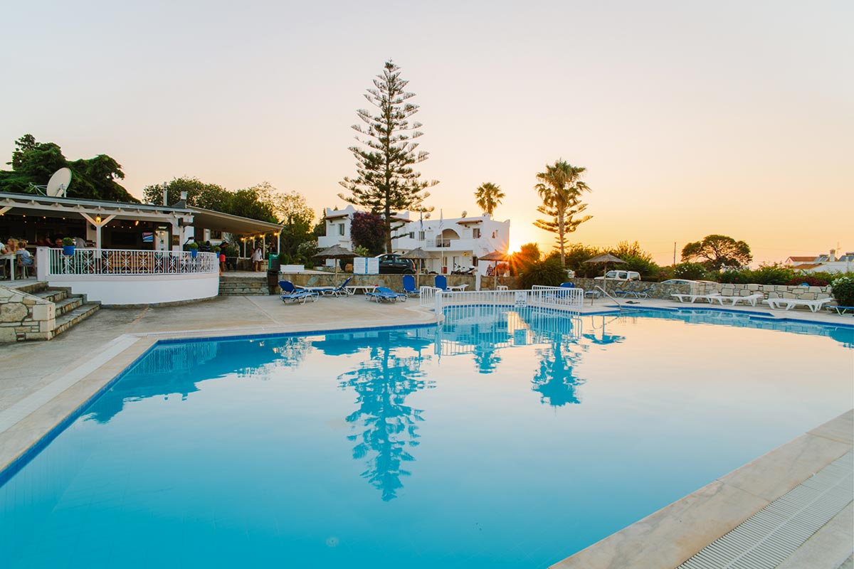 It is known for its hospitality and fun atmosphere. It is located on a small hill, with a quiet surrounding, 1.2 km from the beach as well as Kos town centre, 1.6km from the port, 1km from Kaza Romana the impressive Roman house and 1.4km from the most well-known ancient monument of the island, the Asklepieion, which also represents the island of Kos. Moreover, the archaeological museum is located just 1km from the apartments.
